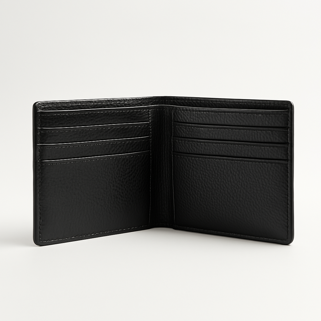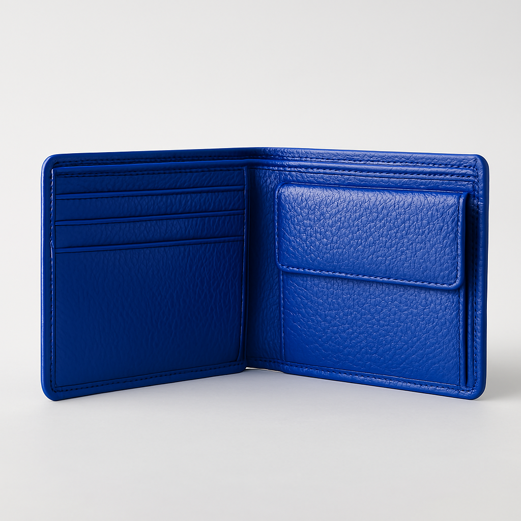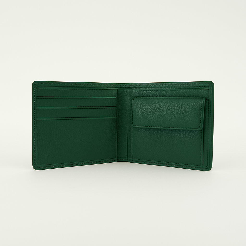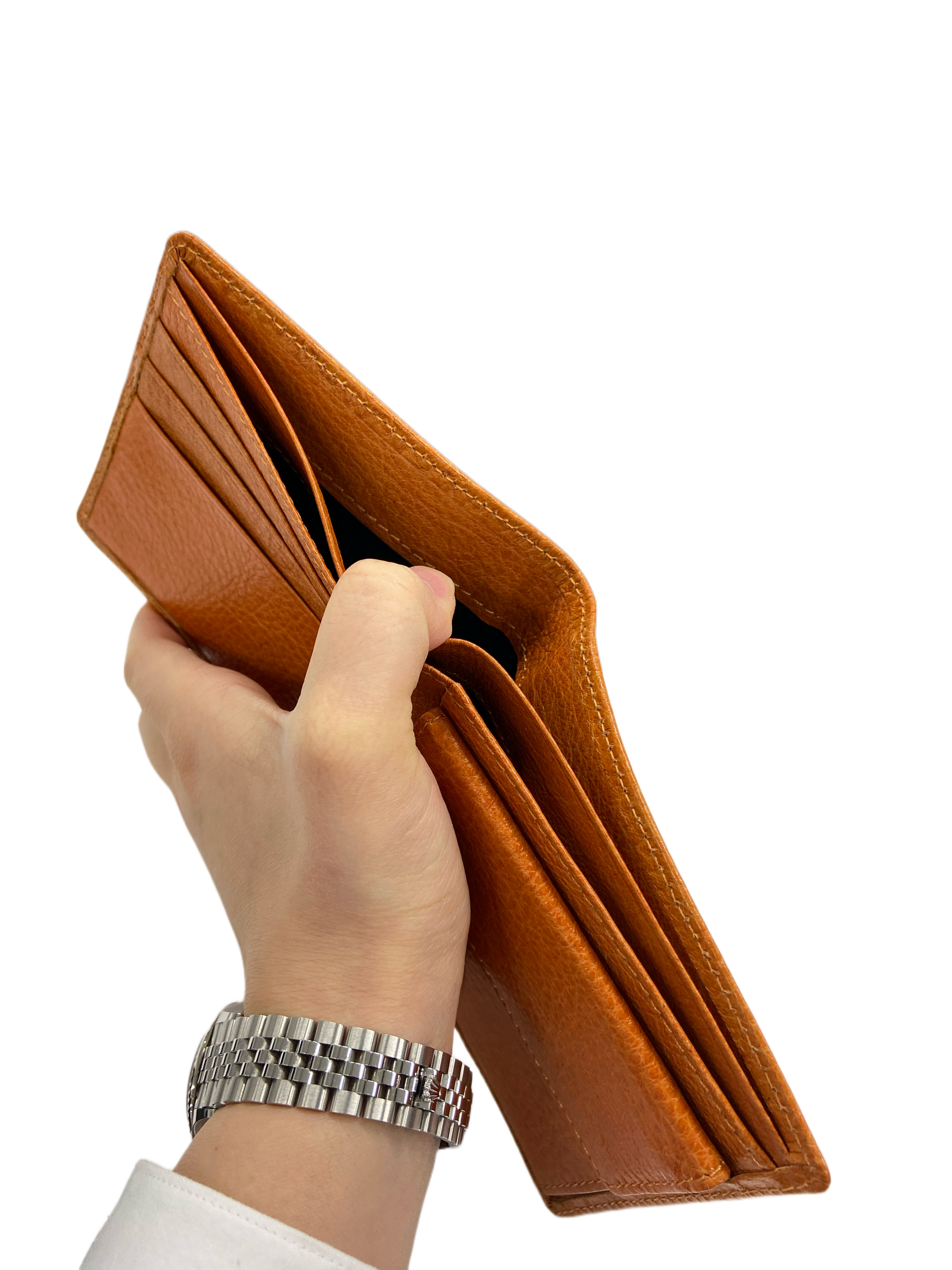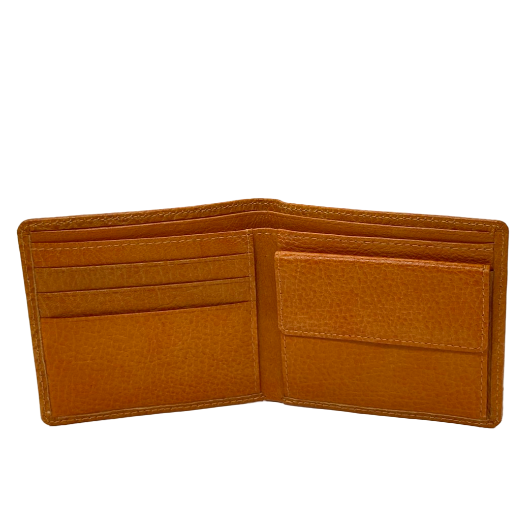 スタンダードな二つ折りウォレットです。札入れ、3カードポケット、コインケースが付いており、使い勝手が良いです。